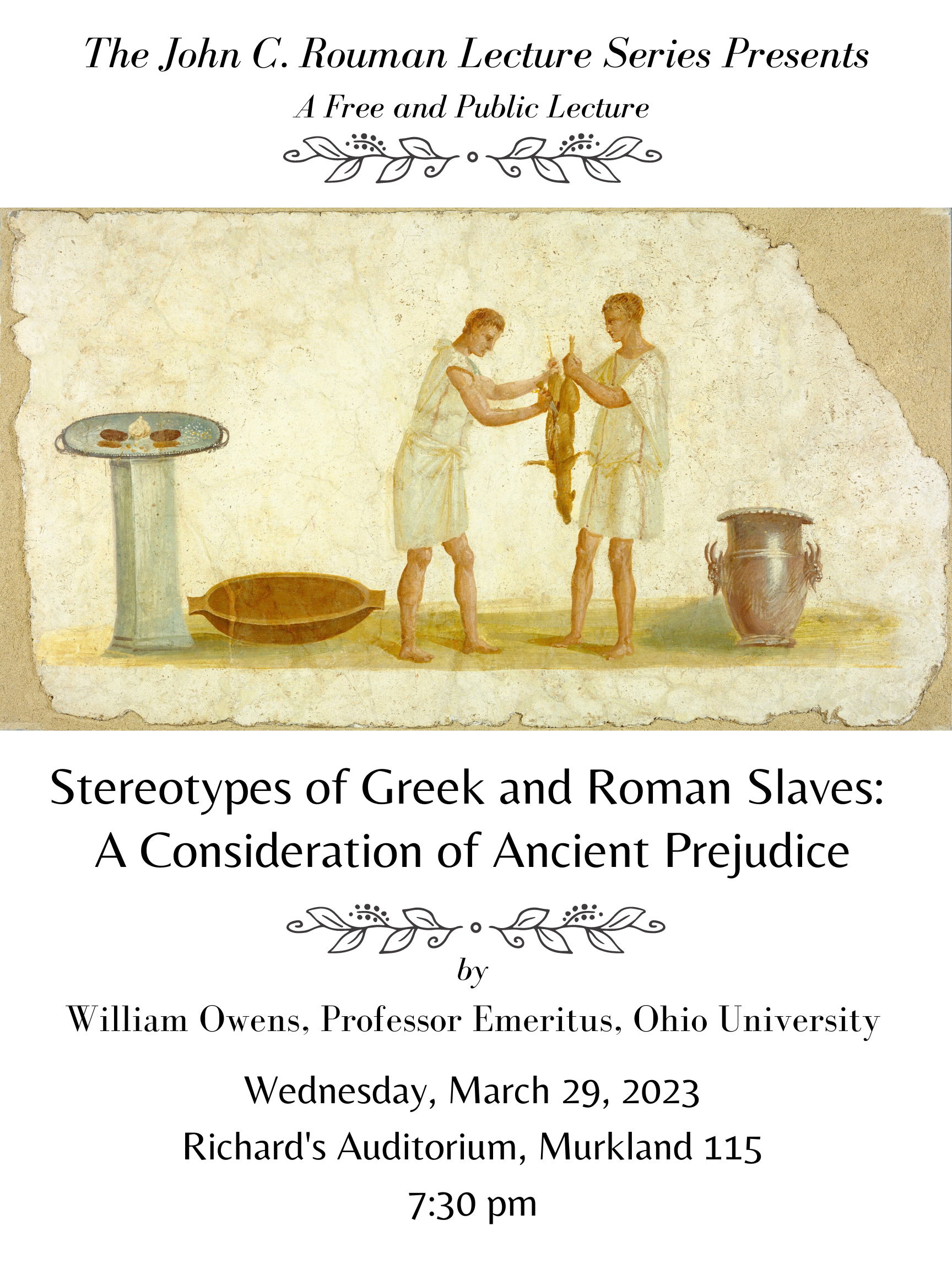 William Owens, Professor Emeritus, Ohio University, will deliver the John C. Rouman Classical Lecture.Â